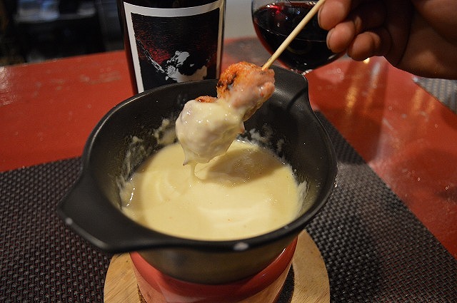 とろとろチーズフォンデュに焼鳥つけてお召し上がりください。